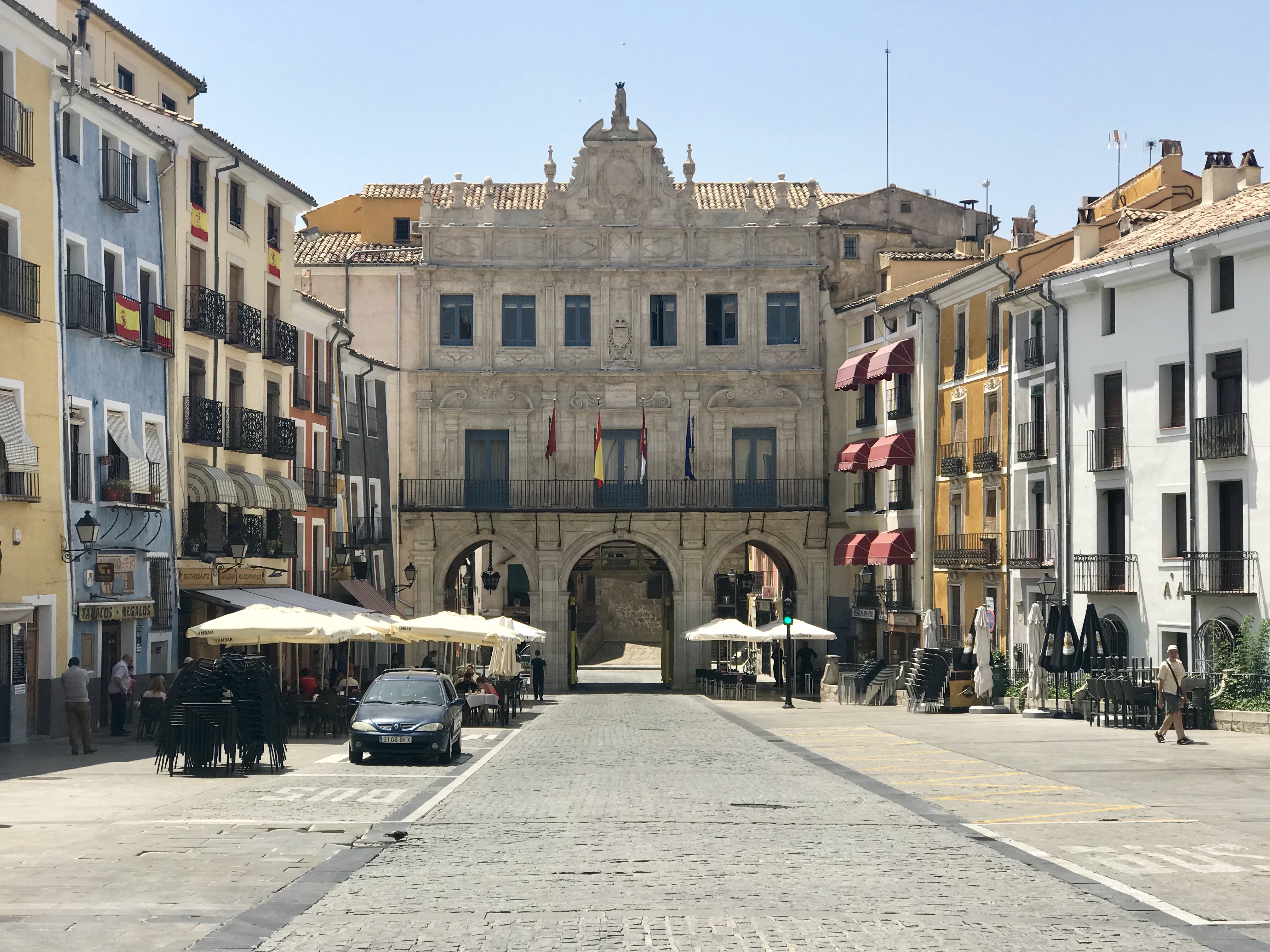 On arrival at Cuenca train station we found that the station is literally in the middle of nowhere and we couldn’t see the town. A quick google maps search told us that buses left every hour to the town centre, so we caught the local bus line #1 to the Plaza Mayor in the old city. One thing that I have learnt about traveling around Spain is that all of the towns have a Plaza Mayor and generally it is the best place to get your bearings and begin your day. The bus cost 2.15€ per person and took about 15 minutes. It was an uphill trip though the modern lower city and the road gets narrower and begins to wind back on itself as you head up into the old town.